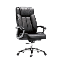 Elevate your workspace with our swivel executive chair featuring a stylish chrome base.